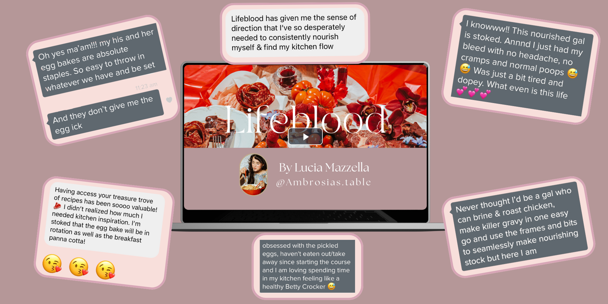 The skills and recipes covered in Lifeblood are important for women who cycle (or have missing cycles), during preconception, pregnancy, postpartum, menopause and older age. Batch cooking nutrient-dense fertility foods are invaluable tools for the fourth trimester and beyond.