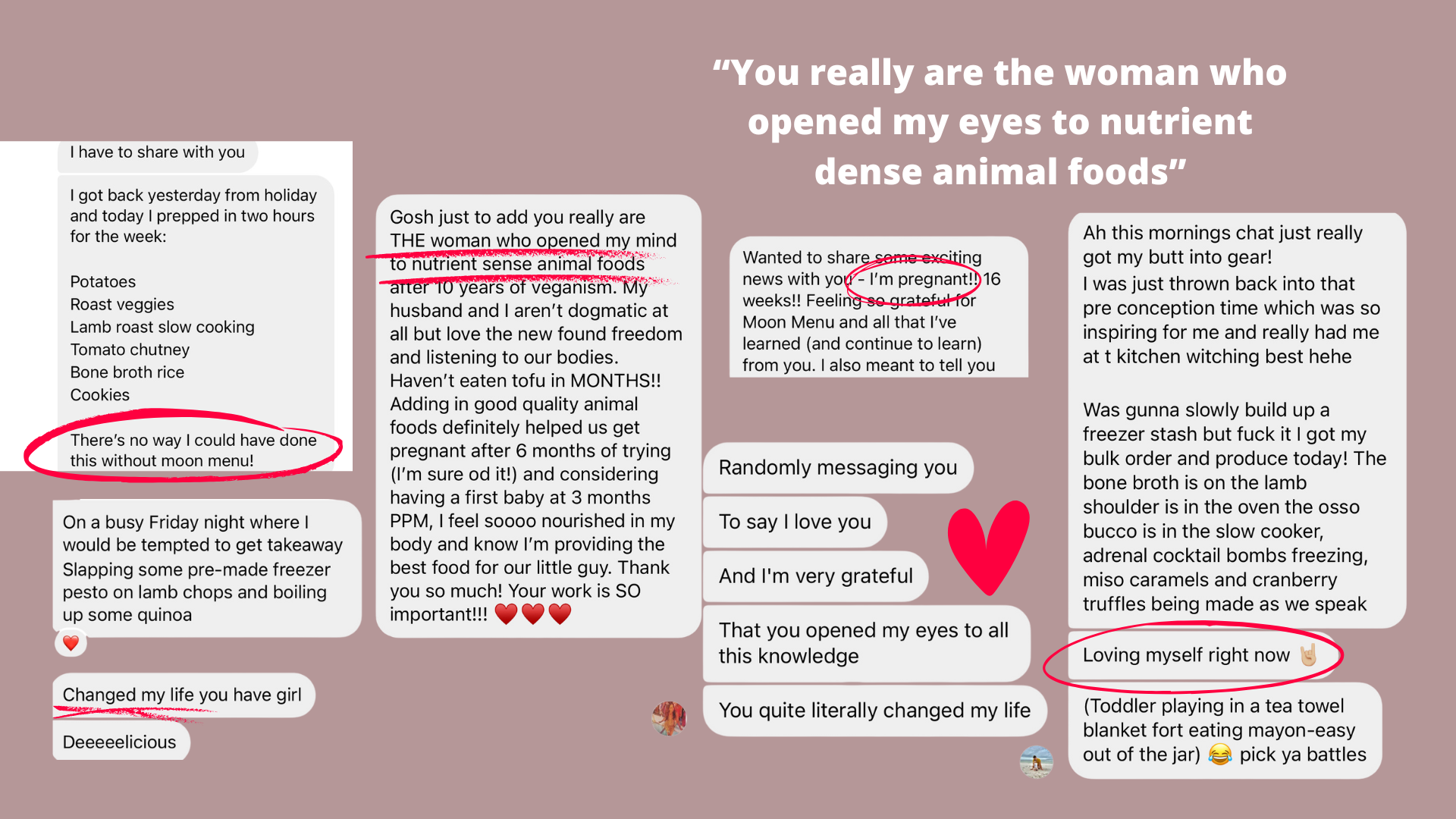 "I loved the videos! I like to be able to *see* what I should be doing. I also loved having the recipes per season, as it made it less overwhelming, knowing I could just flick through to where I'm currently at cycle wise. You actually *do* make food that comes out like the pictures haha."