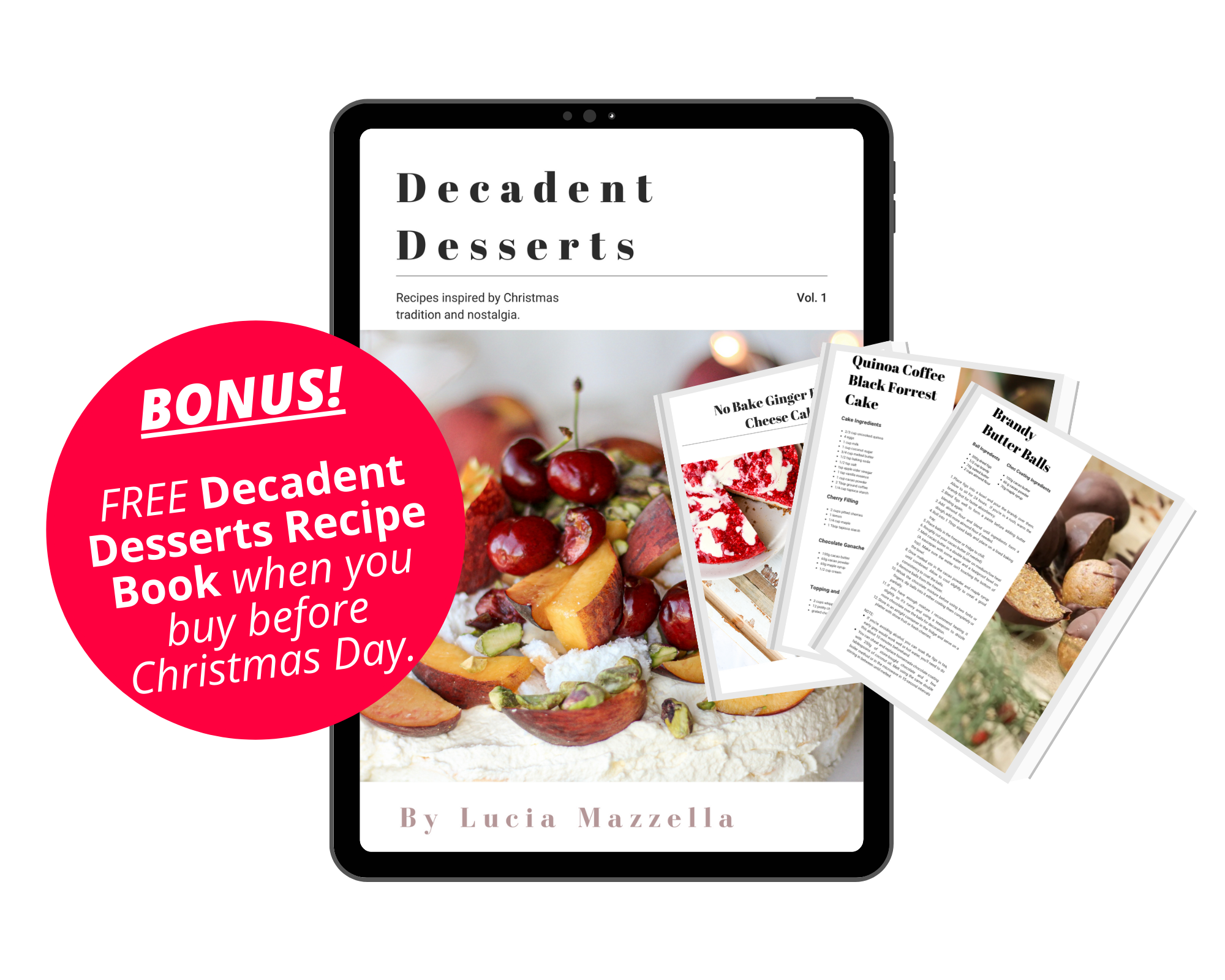PLUS! If you buy before midnight on 24/12/24 you'll get my Decadent Desserts Recipe Book FREE! (valued at $48)