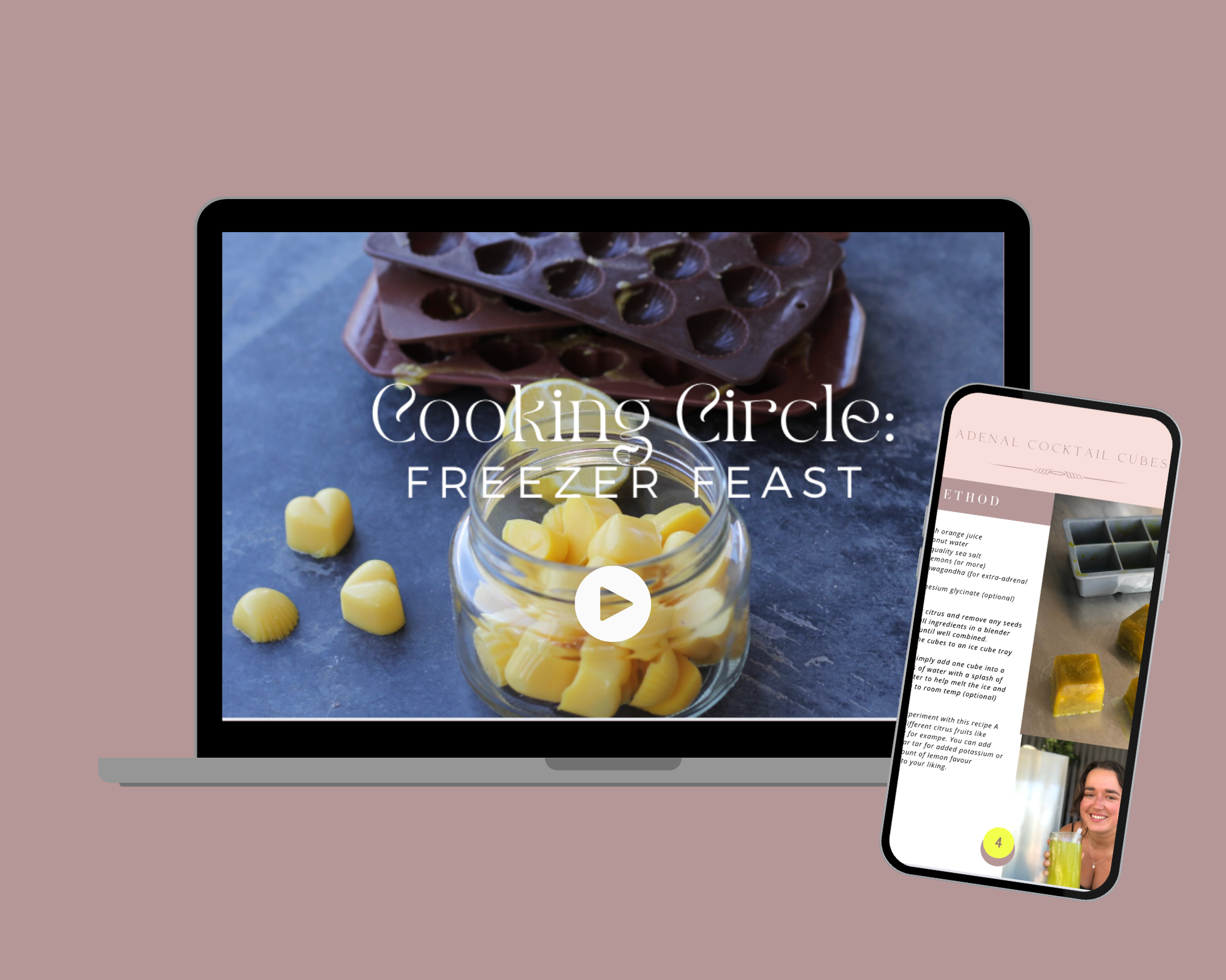 You'll learn and understand why we are cooking these exact recipes and how they nourish your female physiology, so you can eat for your hormones all cycle long even when you don't have the energy!